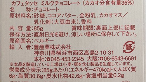 原材料:砂糖、ココアバター、全粉乳、カカオマス/乳化剤(大豆由来)、香料