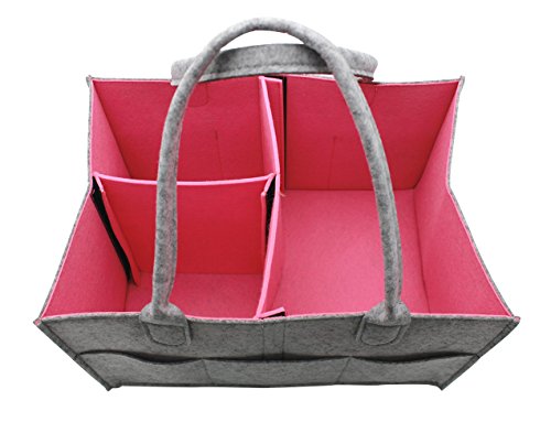 - Style: Gray diaper basket with pink inside, modern stylish design can match any style baby room. Unique velcro dividers help you redesign the basket to fit different baby items