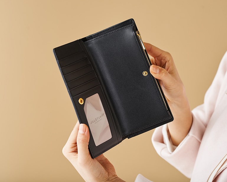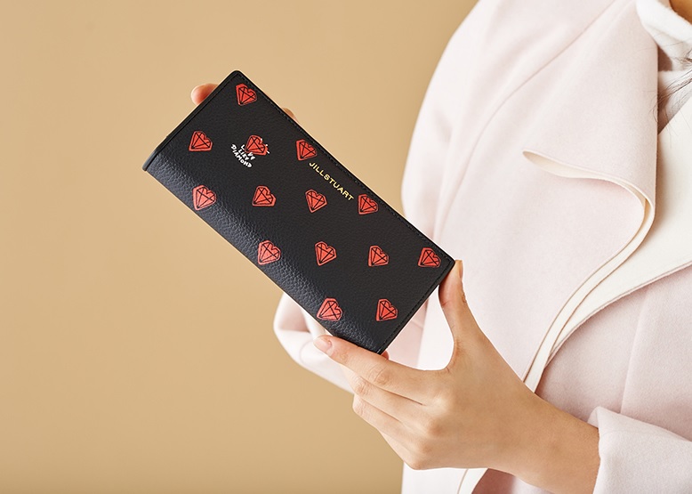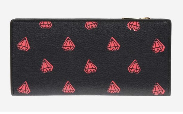 블랙 컬러에 레드 컬러의 귀여운 하트 다이아몬드 패턴이 돋보이는 장지갑입니다.