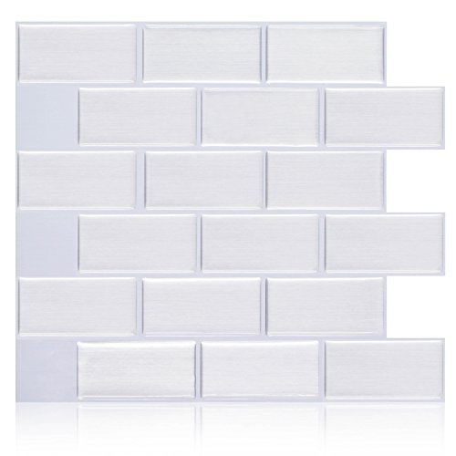 Self Adhesive Tiles-Silver Subway Backsplash Tile,Peel and Stick Tile for Kitchen Bathroom,5-Pack