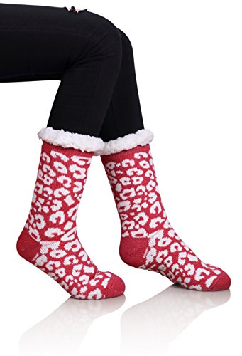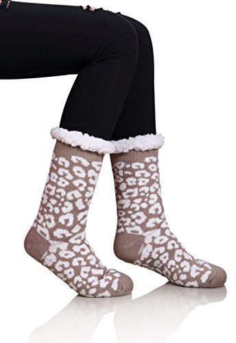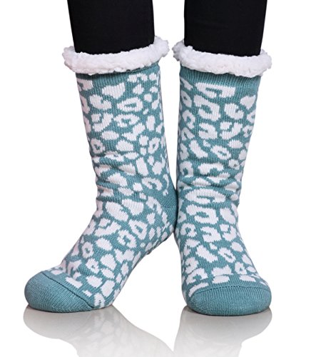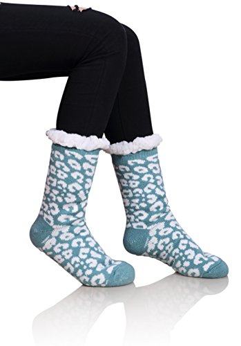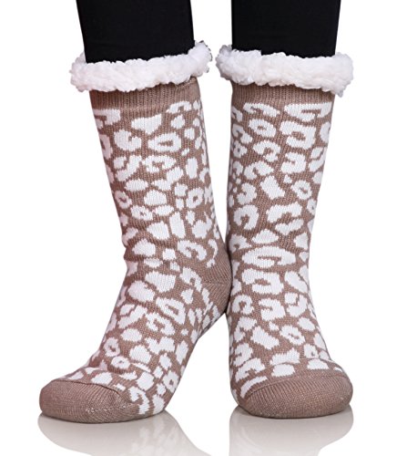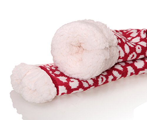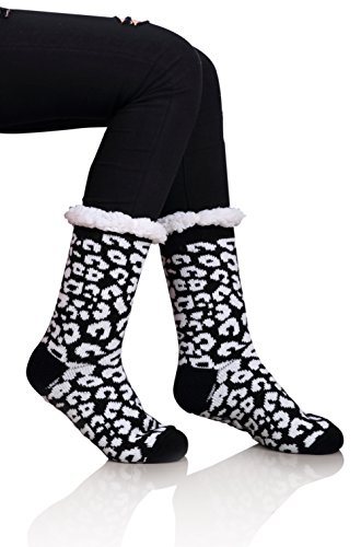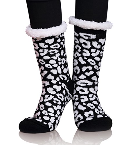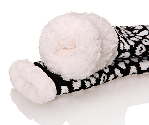 Once a woman tries on a pair of MIUBEAR Sherpa Lined Slipper Socks, she wont want to take them off all day.? The warm and cozy feel, along with non-slip gripper bottoms, make these the perfect all around the house footwear for the winter season. -- Keep your feet toasty warm with these comfy and cozy non slip socks that double as slippers.?Warm soft furry plush sherpa fleece lining;?Treaded bottoms, nonslip, anti-skid gripper tread on sole; Fashionable snuggly pack of versatile indoor winter lounge booties for ladies. -- Double Layer / Extra Thick / Super Soft Warm Microfiber Fuzzy Comfy Home Slipper Socks; Perfect for Christmas and holiday gifts, stocking stuffers, birthday present. Great slipper socks for women, teens, mom, sister, wife. Cushioned, comfortable durable; relaxing seasonal loungewear to wear around the house for winter, fall spring?