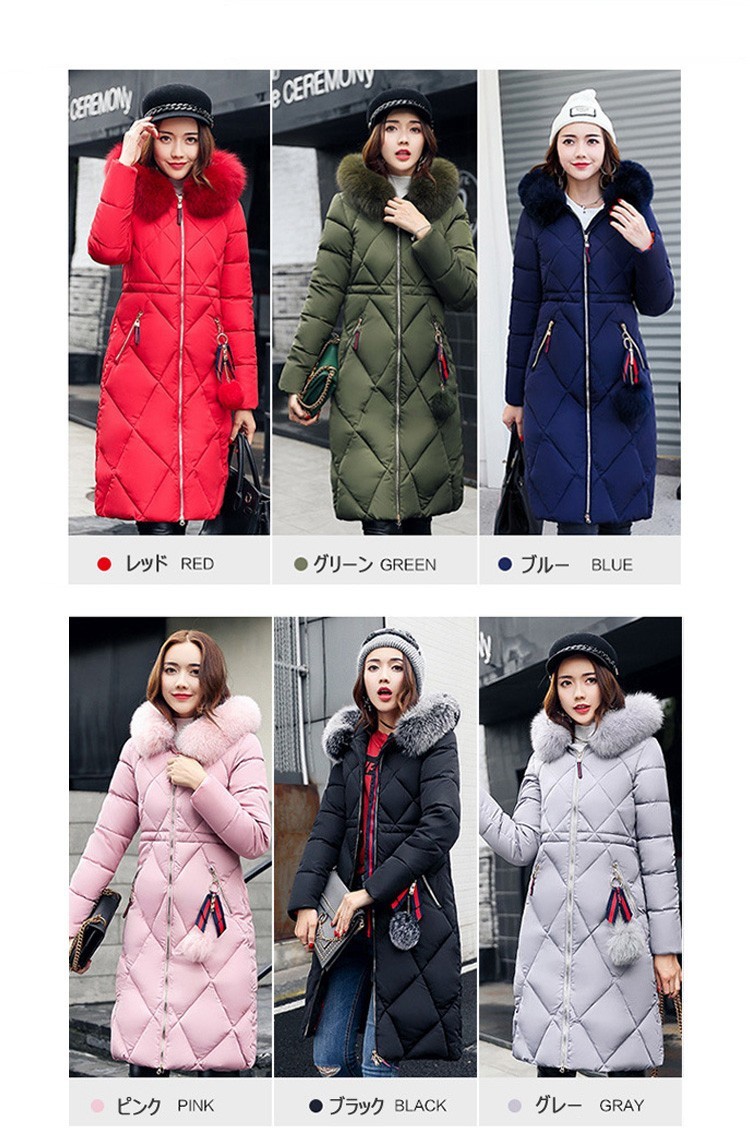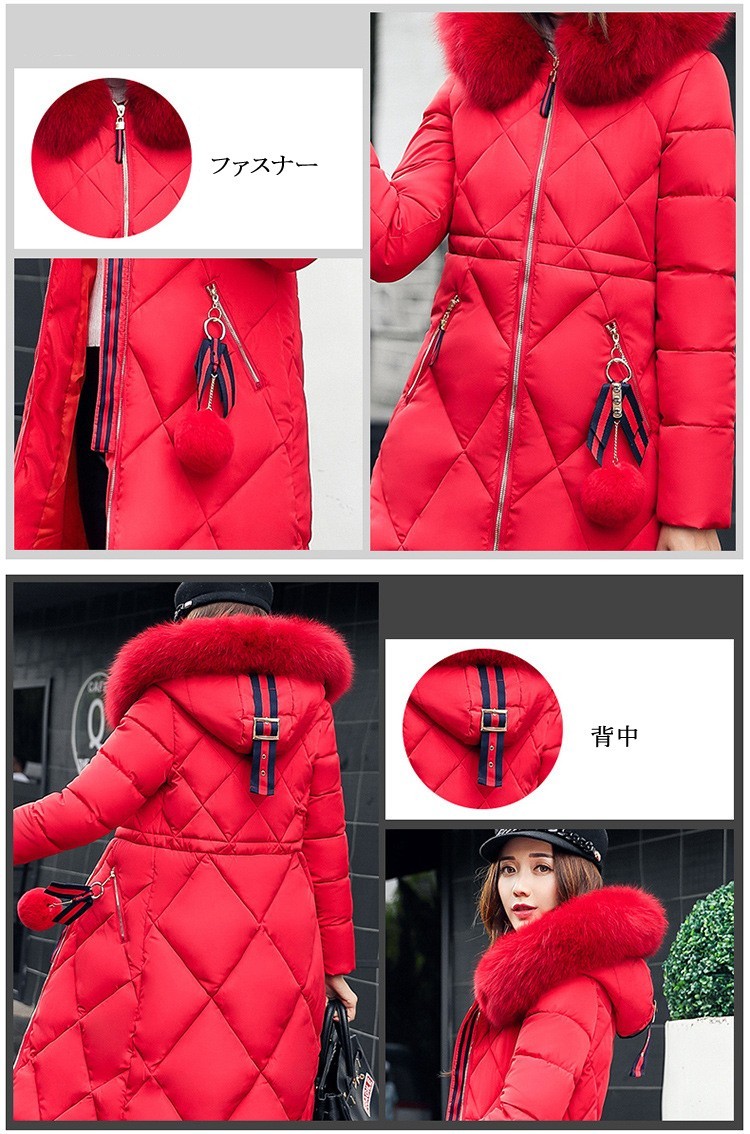 【素材】:ポリエステル【カラー】:レッド、グリーン、ブルー、ピンク、ブラック、グレー【サイズ】:(約) *着丈:98cm(M) 99.5cm(L) 101cm(XL) 103.5cm(2XL) 105cm(3XL) *バスト:96cm(M) 101cm(L) 106cm(XL) 111cm(2XL) 116cm(3XL) *肩幅:39cm(M) 40cm(L) 41cm(XL) 42cm(2XL) 43cm(3XL) *袖丈:61cm(M) 62cm(L) 63cm(XL) 64cm(2XL) 65cm(3XL) *裾幅:116cm(M) 121cm(L) 126cm(XL) 131cm(2XL) 136cm(3XL) *参考体重:52.5kg(M) 52.5-60kg(L) 60-67.5kg(XL) 67.5-75kg(2XL) 75-85kg(3XL)連携キーワード:中綿ジャケット 中綿コート ロング丈 冬用 レディース ファイクファー アウター 暖かい 防風防寒 ファー付フード オシャレ 厚手 大きいサイズ 軽量 着痩せ 6色