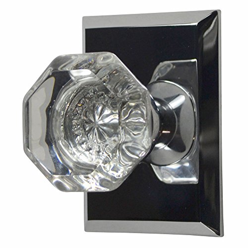 -. Title : Providence Octagon Real Crystal Door Knob Set with Square Rosettes in Polished Chrome