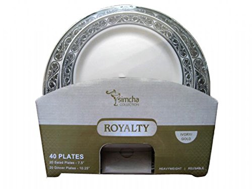 Blue Sky Royalty Heavyweight Plate Combo (40 Pack), Ivory with Gold Border
