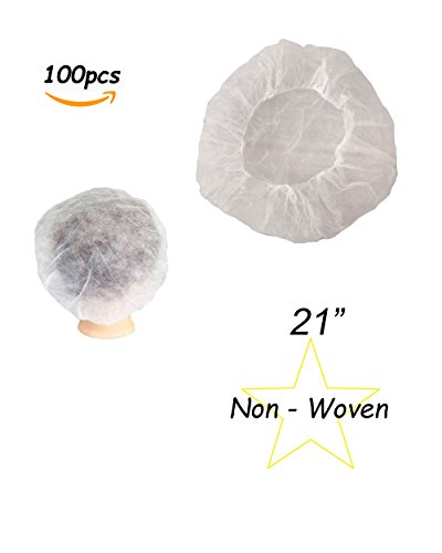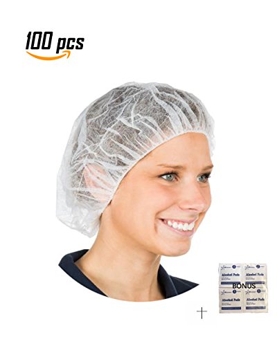100 PCS--21", Disposable Bouffant (Hair Net) Caps, Spun-Bounded Poly, Hair Head Cover Net, Non-Woven, Medical, Labs, Nurse, Tattoo, Food Service, Health, Hospital -Bonus Starryshine Alcohol Pads