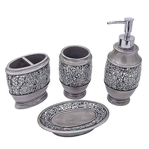 Bathpro Mosaic Bathroom Accessories,Shower 4-Piece Set,Silver Bath Set,Bath Collection with Lotion/Soap Dispenser Toothbrush holder,Tumbler
