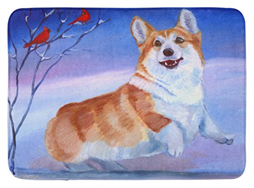 Caroline's Treasures 7328RUG "Corgi Snow Cardinal" Floor Mat, 19" x 27", Multicolor