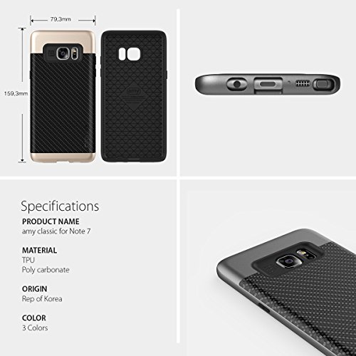 -. Binding : Wireless Phone Accessory -. Brand : araree -. Feature : [MATERIAL] Amy Classic is sleek, lightweight, and form fitted all constructed from materials for maximum defense. The 2 piece shock absorbent frame is made of a Carbon TPU Shell + PC Frame more protect for Samsung Galaxy Note 7 / [DESIGN] TPU carbon satin finished on the back offers the best grip, slim and lightweight, It's perfectly engineered to absorb, evenly distribute, and circulate any impacts into the PC bumper. The case offers superior shock absorption and scratch resistance with a compact, stylish design letting you protect your phone while keeping your own personal style. / [FUNCTION] Easy to press all buttons, controls and ports without having to remove the case / The case forepart of up and down have 1mm slight rasied bezel that forms a design to keep your device elevated, when placed camera down on a flat surface, it protects the lens / [PROTECTION] Note 7 amy class case forepart of up and down have 1mm slight rasied bezel that forms a design to keep your device elevated, when placed camera down on a flat surface, it protects the lens / [ADDITION DESIGN] Interior rubber of the diamond patter is able to absorb shocks / Made in Korea -. Label : KDLAB INC. -. Manufacturer : KDLAB INC. -. PackageQuantity : 1 -. ProductGroup : Wireless -. ProductTypeName : WIRELESS_ACCESSORY -. Publisher : KDLAB INC. -. Studio : KDLAB INC. -. Title : Galaxy Note 7 Case, araree [Amy Classic] Multi layer Light Pliable Rubber Cover Anti-Polution Carbon Shell Back Pattern + PC with Perfect Grip and Fit Case for Samsung (2016) Eco Package