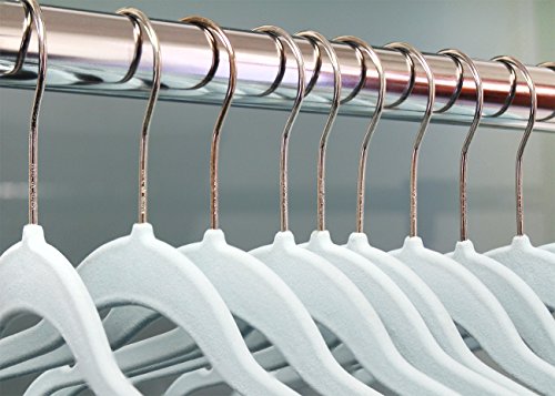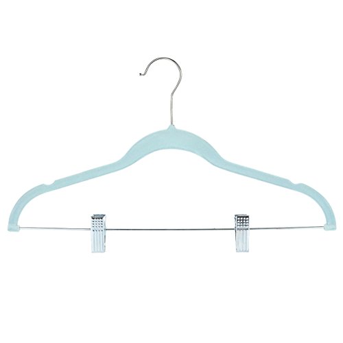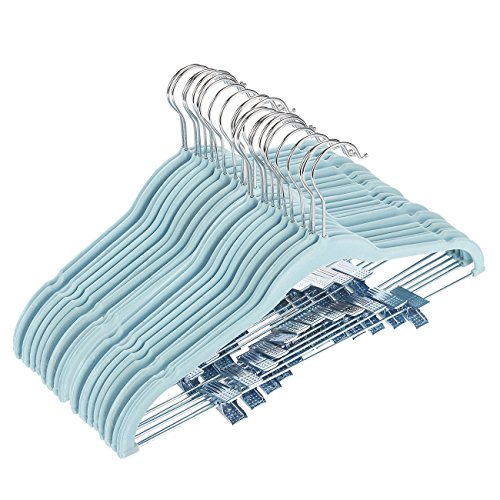 Velvet Hangers with Clips - For Shirts, Skirts, Pants, and Dresses - Non-Slip Velvety Smooth Texture - Slim Space Saving Design - Blue - 24 Pack - 18 Inches