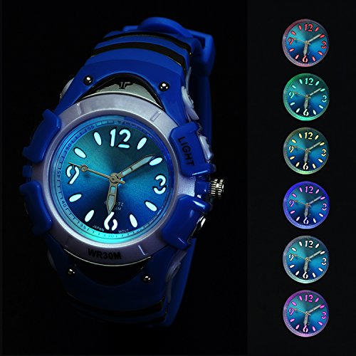 Azland children's watch is easy to read, durable.It features an night-light to help show time in the dark, and water-resistant to 30 m,it is safe to wear