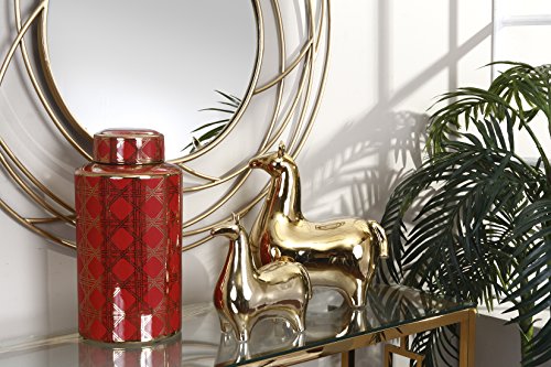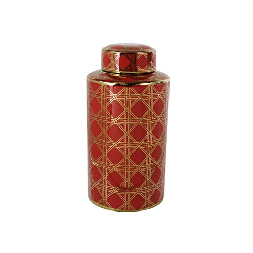 Sagebrook Home Decorative Ceramic Covered Jar, 8.25x8.25x16, Red/Gold