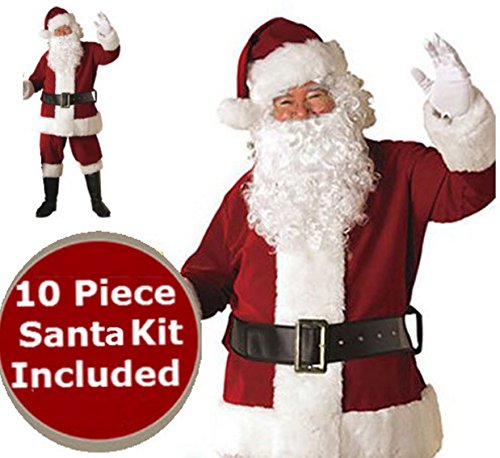 -. Title : BirthdayExpress Santa Suit - Crimson Deluxe Complete 10 Piece Kit - Santa Costume Plush Outfit