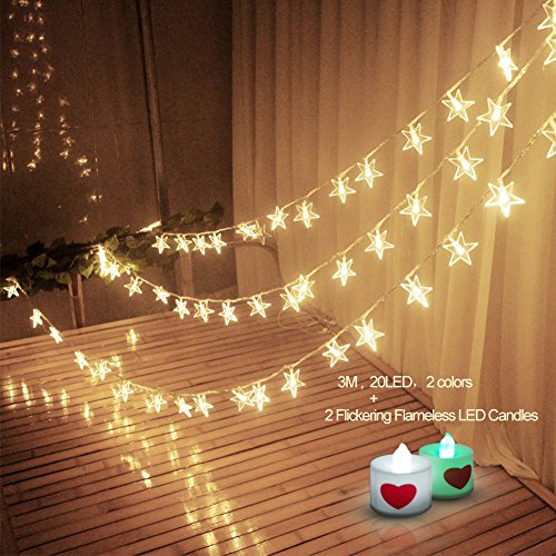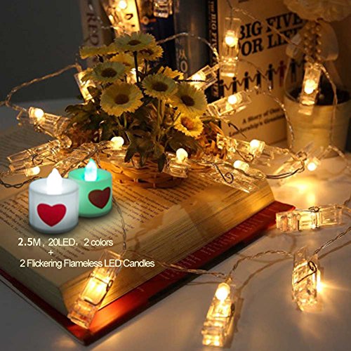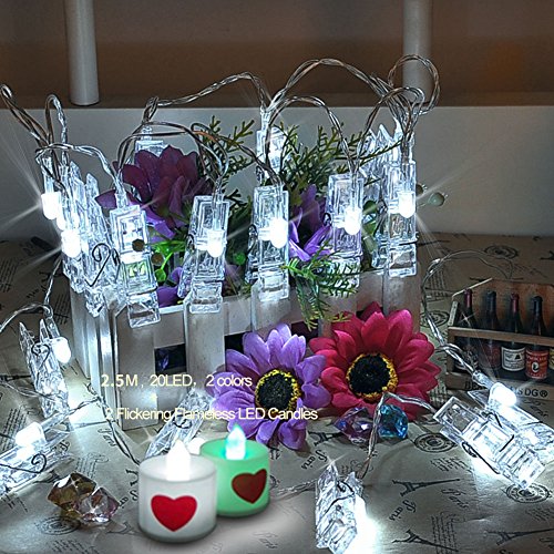 -. Title : HUATK 2.5M 20 LED Battery Powered clip string light - an Ideal showcase for Christmas light,photos,artworks, memos or christmas, Halloween,Party, Wedding, New Year,.2 candle lights