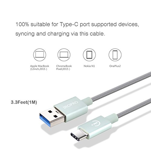 USB Type C Cable 1M (3.3 feet) IROPRO® USB Type C to Type A 2.0 Male (USB-C to USB-A) Fast Data Cable for LG G5, OnePlus 2, Nexus 5X, 6P, Apple Macbook 12 inch, Lumia 950, Nokia N1 Tablet and More
