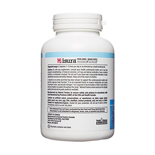 L-Arginine supports muscle metabolism and also is required in the formation of nitric oxide, a compound involved in the circulatory system. Natural Factors amino acids are the highest quality pharmaceutical grade products available.