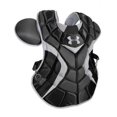 Studio : Under Armour Publisher : Under Armour Binding : Misc. Product Description Under Armour Pro Chest Protector...Innovative Features Ensure Maximum Protection! Under Armour Pro Chest Protectors feature: Customizable straps and harness keep chest protector secured in place Plastic inserts in throat, sternum, and shoulders disperse impact Breathable mesh backing, light weight, comfortable design Low rebound foam deadens ball Fully adjustable shoulder cap Removable tail Ventilation ports on back maintain ventilation and air flow AEGIS Microbe Shiled kills unwanted bacteria and odors Color: Black/Silver Navy/Silver Royal/Silver Scarlet/Silver Length: 161/2" Under Armour Baseball...Built For Domination! 0