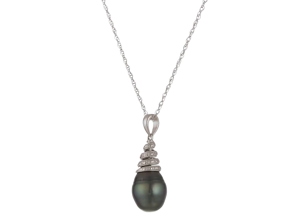 Sterling Silver Tahitian Cultured Black Pearl, and Diamond Pendant Necklace (9-9.5 mm)