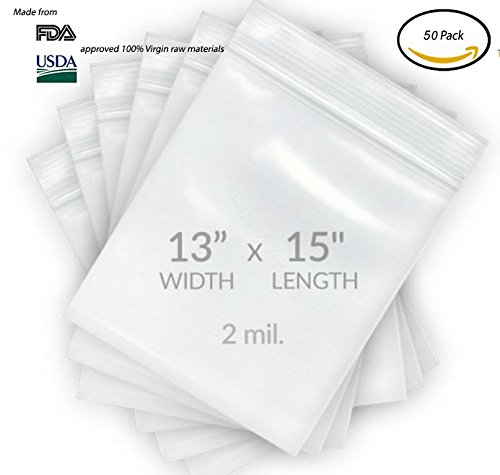 Large Ziplock 13" x 15", 2 Mil Resealable Zipper Jumbo size Plastic 2Gallon Storage poly Bags (50)