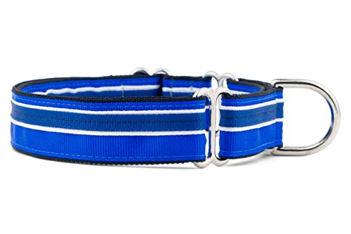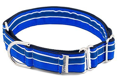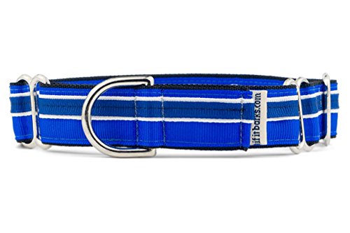 Studio : If It Barks Publisher : If It Barks Binding : Misc. Product Description If It Barks martingale dog collars, also known as limited slip collars, are highly recommended by dog trainers over your standard buckle collar or less humane choke chains. Benefits of Martingale Collars: - Dog with small heads and big necks are not able to back out of the collar like traditional buckle style collars. - Martingales provide better control while walking your dog by applying even pressure around their neck. This reduces injury and choking. - The collar is constructed with two loops of webbing. One wraps around your dog's neck and the other is used to control the amount of closure of the collar when your dog begins to pull. How you adjust the collar determines the allowable closure. Features: - Perfected since 2002, our design uses thin military spec nylon webbing which is approximately half the thickness of others. This provides plenty of strength but not the extra weight for your dog to have to carry. - Collar is decorated with durable polyester grosgrain ribbon that is easy to clean. - All hardware is durable metal for years of use. - Backed by the If It Barks warranty that if the stitching or hardware fails with regular wear, we'll replace it. - Handmade in North Carolina. - 1" inches (2.5 cm) wide in sizes small (11" - 15")(28 - 38cm), medium (15" - 22")(38 - 56cm) and large (19" - 30")(48 - 76cm) Measure Your Dog: Loosely measure the neck where the collar would normally sit sliding two fingers between the dog's neck and measuring tape. Measure the widest part of your dog's head. Order a collar that will fall within the range of these measurements. Care Instructions: If It Barks collars are machine washable. We suggest placing the collar in a pillowcase or lingerie bag to protect metal hardware. Line dry. 0