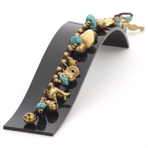 -. Feature : Handmade anklet / Made with brass bells and simulated turquoise beads. / Length 25 centimetres. / Fits ankle size up to 23 centimetres.