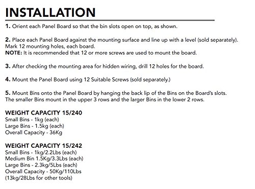 - Versatile 44pc storage solution for workshops, garages and sheds. Perfect for organizing hand tools, accessories and small parts such as, screws, washers, nuts, bolts, nails, clips and more!