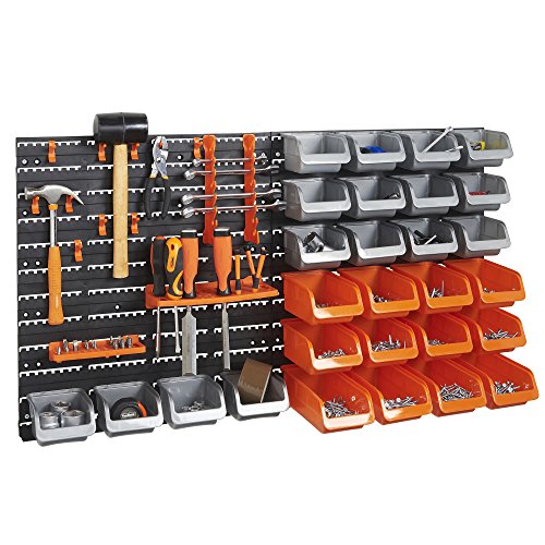 VonHaus 44 Piece Wall Mounted DIY Garage Storage System with Rack, Bins, Pegboard Hook and Panel Set - Tool, Parts and Craft Organizer