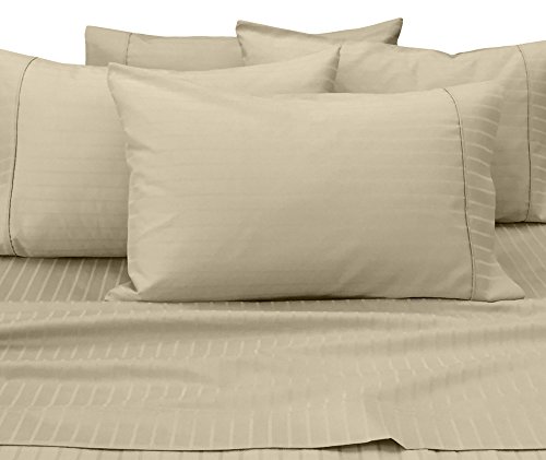 - 100Percent Cotton, 420TC 6-piece dobby stripe Queen sheet set