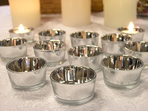 Silver Glass Tea Light Candle Holders - Set of 72 - Metallic Silver Candle Holders - Wedding Centerpieces - Silver Decorations - 25th Anniversary Decorations - Glass Candle Holders