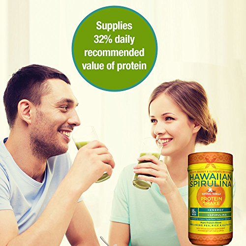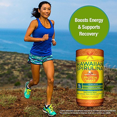Feel the difference with our new Hawaiian Spirulina Protein Shake! The first of its kind, this delicious vanilla-flavored blend of entirely plant-based proteins and caffeine-free energy boosters, is designed to help you play hard and recover fast. The Hawaiian Spirulina Protein Shake is closely modeled to follow the World Health Organization's standard for ideal daily amino acid ratios, making it the superior choice for supplemental nutrition. The protein found in the Hawaiian Spirulina Protein Shake has the highest protein digestibility score when compared to many vegan foods. Simply mix 1 scoop, daily, of Hawaiian Spirulina Powder with 8 eight ounces or more of water, milk alternative (rice, coconut, almond, etc.), or add it to your favorite smoothie. Refrigerate after opening to maximize freshness.Feature