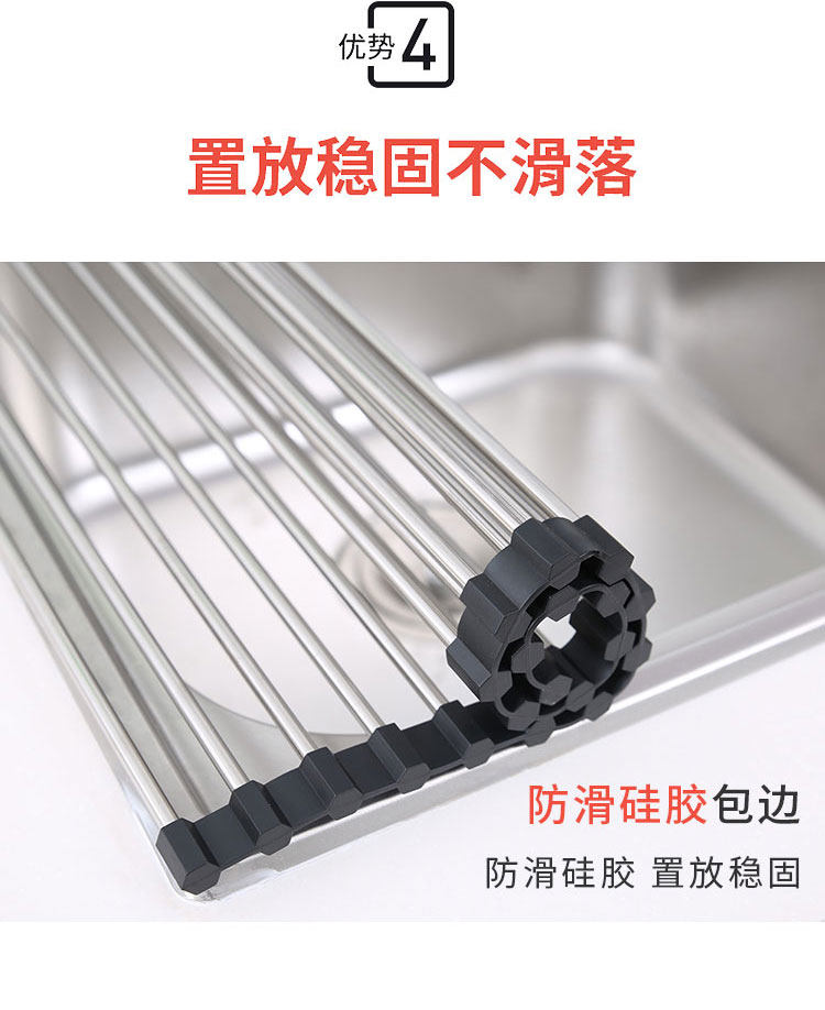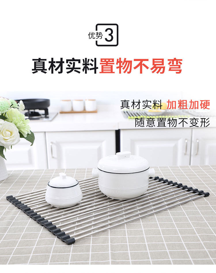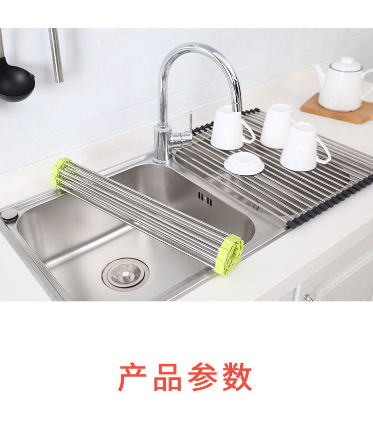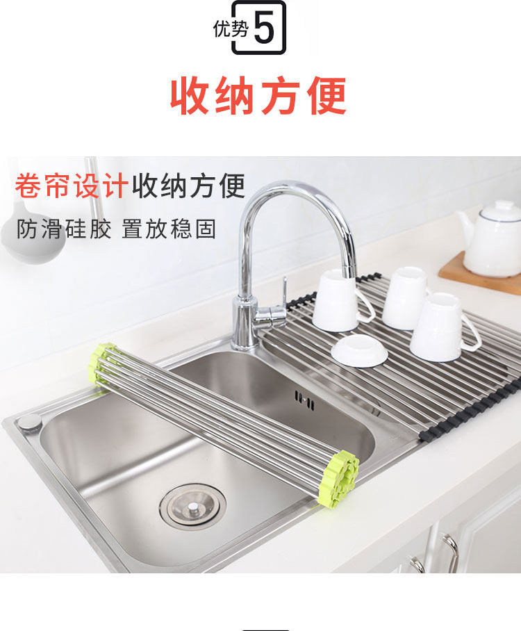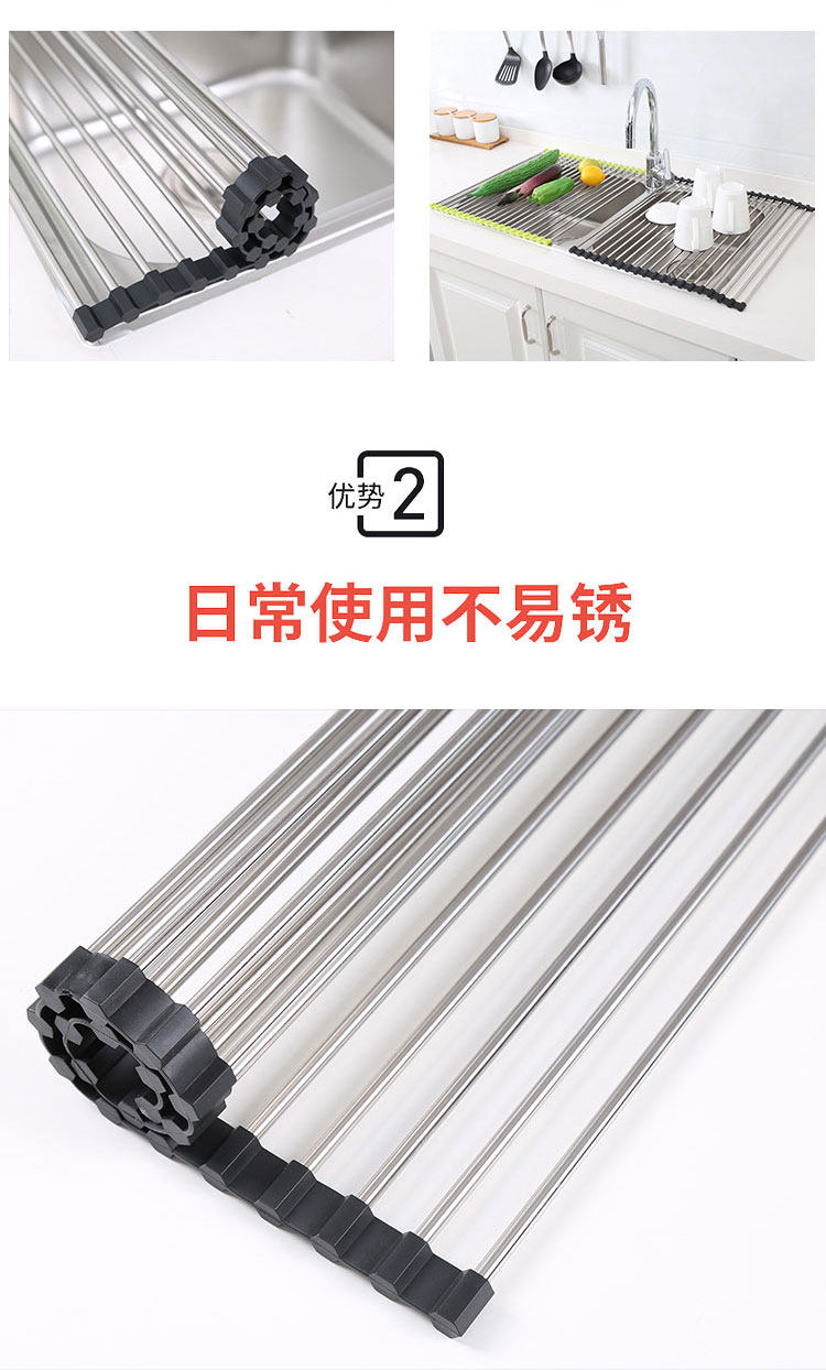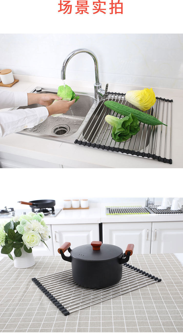 厨房不锈钢卷帘水槽置物架沥水架可折叠碗碟果蔬收纳架隔热垫锅架