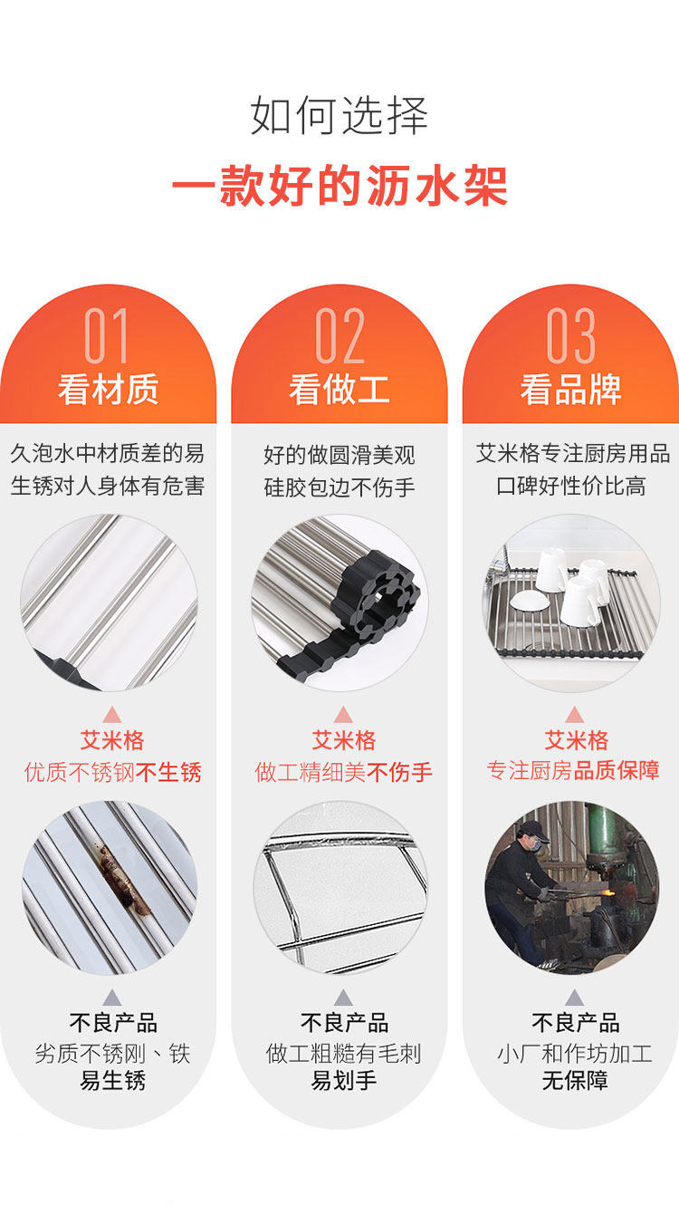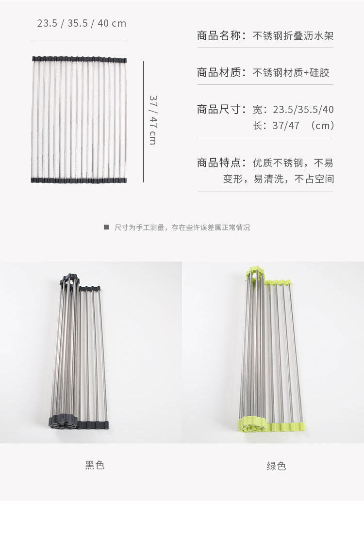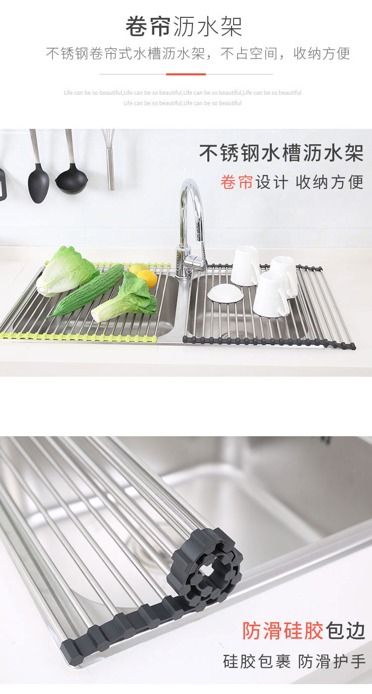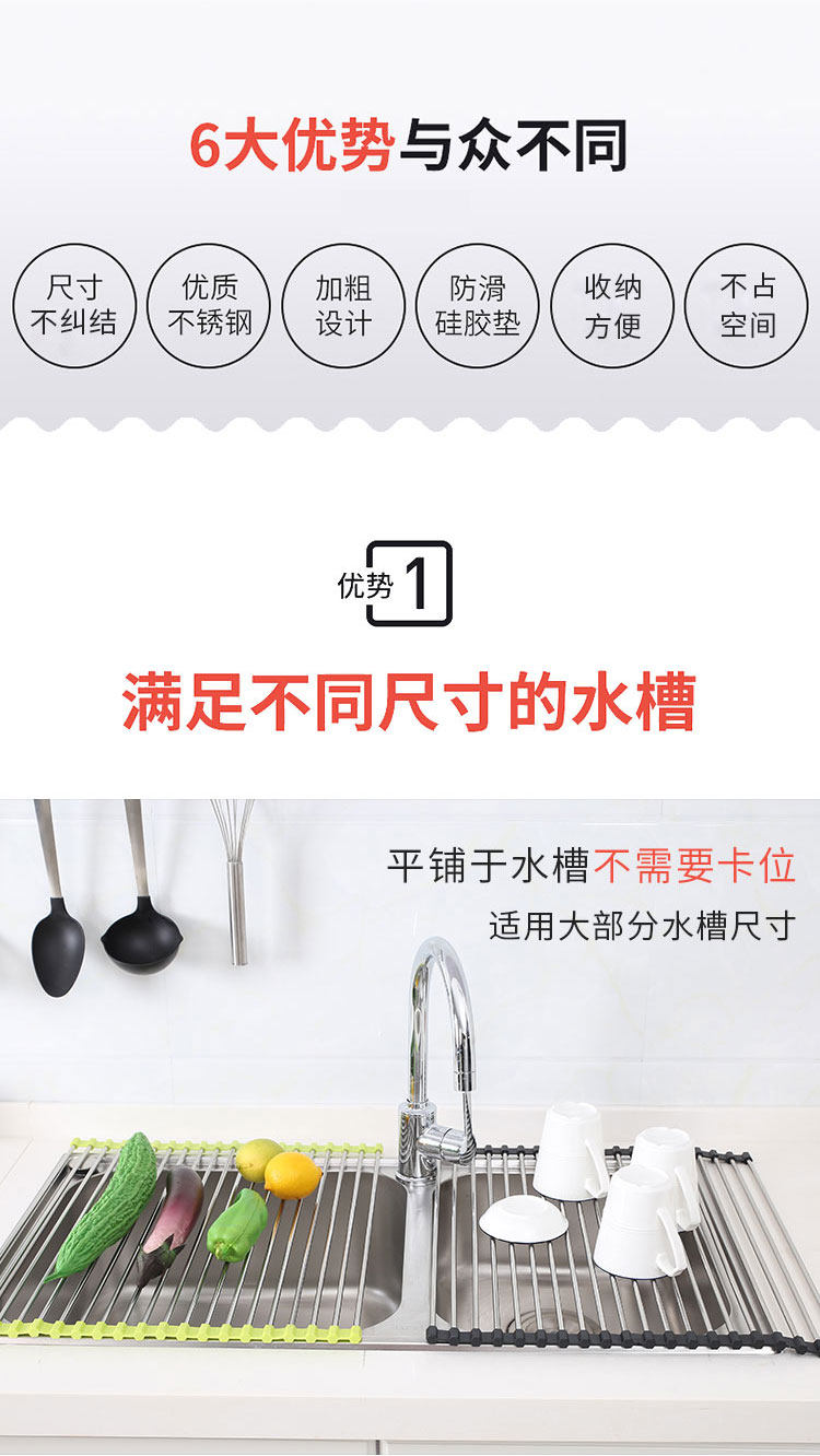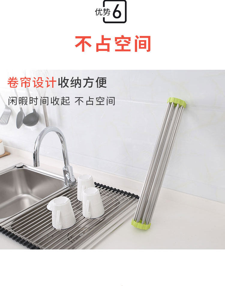 厨房不锈钢卷帘水槽置物架沥水架可折叠碗碟果蔬收纳架隔热垫锅架