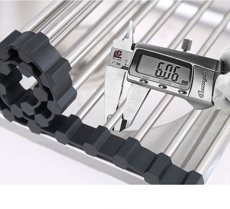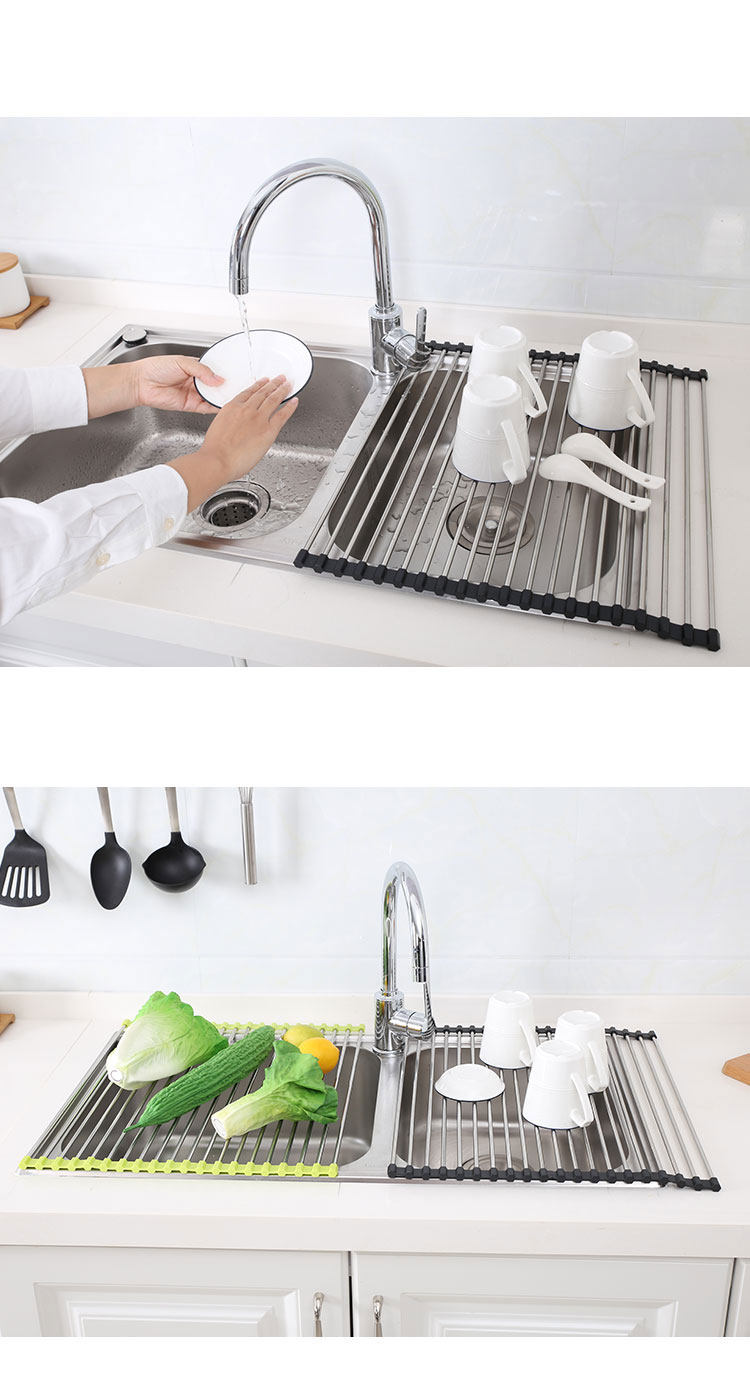 Kitchen stainless steel roller shutter sink shelf drain rack collapsible dishes fruit and vegetable storage rack insulation pad pan rack