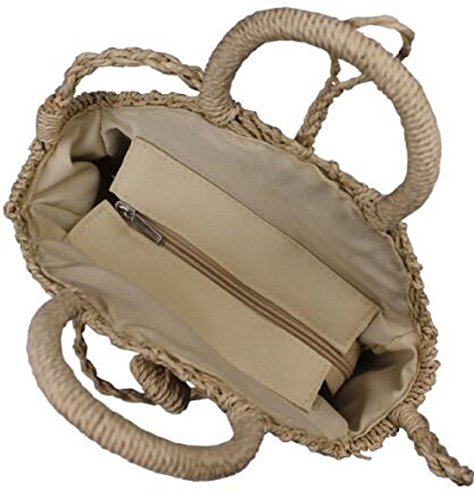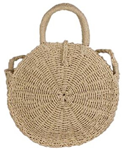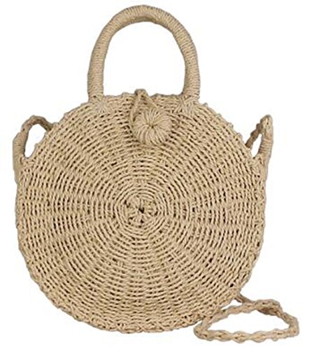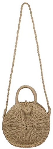 Lush Leather Handmade Woven Circle Straw Abacá Shoulder Natural Crossbody Rope Bag