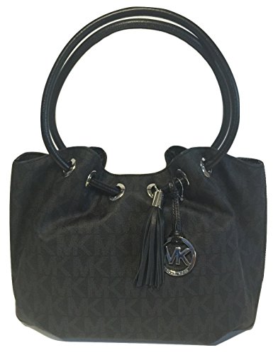 -. Title : Michael Kors MD EW Ring Tote Signature MK Black PVC