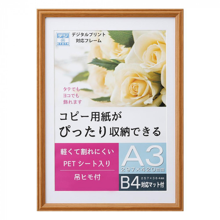 fk094igrjsプリントしたら切らずにそのままセットできますタテでもヨコでも使用できます サイズ 額外寸:322×445mm 個装サイズ:32.7×45×1.9cm 重量 600g 個装重量:610g 素材・材質 フレーム:樹脂 前面:PET 裏板:MDF 仕様 収納寸法:297×420mm 窓ヌキ寸法:247×354mm(B4サイズ対応) 吊カン(タテ・ヨコ) 吊紐付き 生産国 中国 デジタルプリント対応フレーム プリントしたら切らずにそのままセットできますタテでもヨコでも使用できます