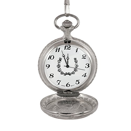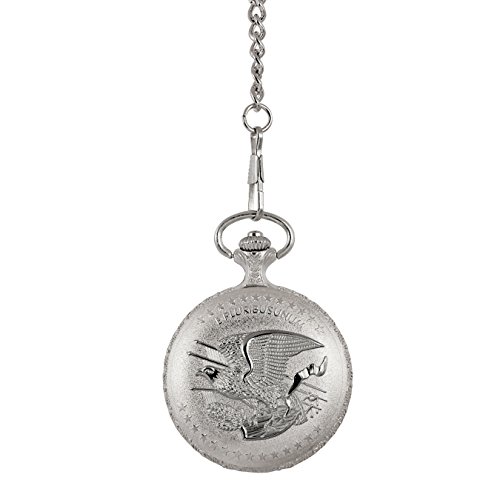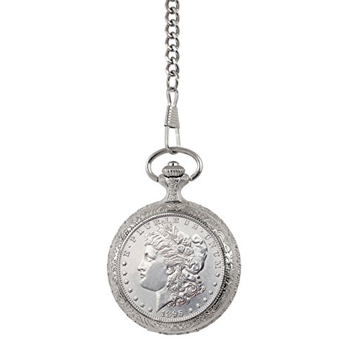 Studio : UPM Global, LLC Publisher : UPM Global, LLC Binding : Watch Product Description Here is a truly spectacular timepiece - a pocket watch with an authentic Brilliant Uncirculated U.S. Mint Morgan Silver Dollar on the front of its intricately carved case, a detailed relief sculpture of an American Eagle on the back. The Morgan Silver Dollar is guaranteed to be dated from the 1800's! Practical as well as beautiful, the watch has a sweep second hand, quartz precision, and a one-year warranty. Watch comes with a fob chain and certificate of authenticity. 0