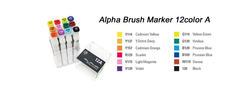 ALPHA Brush Marker 12 Colors A SET / B SET Art Color Paints SET
