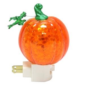 7 inch tall Pumpkin Night Light with Swirling glitter confetti features a swivel plug and an on/off switch. This beautiful night light and its soft hue of color is just the right item to enhance a room décor during the fall. Pumpkin collectors will love the uniqueness of this plug in night light.Feature