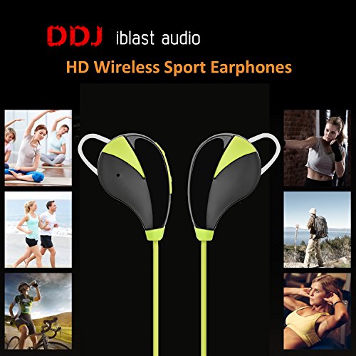 DDJ Bluetooth Headphones Wireless Running Headsets True HD Sound Noise Cancelling Sweat-Proof Workout Sport Gym Headphones for iPhone 6/6s/6s Plus(Black with Green)