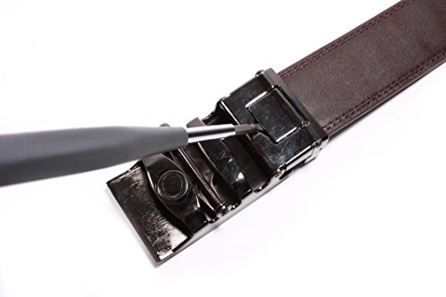 All of our belts are made of genuine leather, not imitation or PU material, and they have a pleasant leather aroma. They're stylish enough for the boardroom and look awesome with casual wear too. At 1-1/4" wide the strap will easily fit most pants and dress slacks. If you find that the strap is too long after you put it on, you can easily shorten it by removing the buckle and trimming it to your desired length.Feature