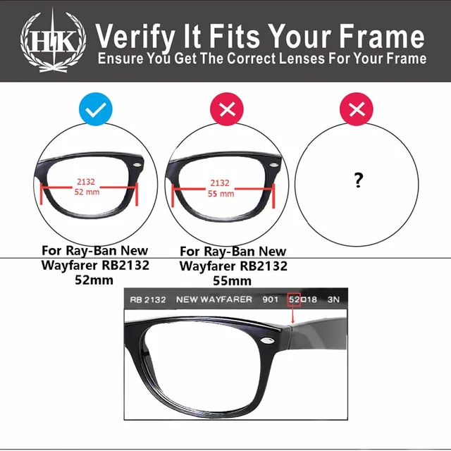 | [해외] HKUCO 레이 금지 나그네 RB2132-52mm 선글라스 망 교체 렌즈 |
