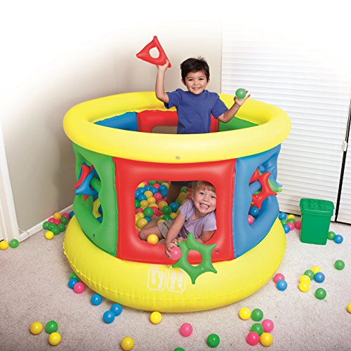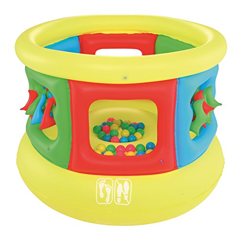 Studio : Bestway Toys Domestic Publisher : Bestway Toys Domestic Binding : Toy Product Description The Jumping Gym has an inflated base ring and a floor for ample room for bouncy play. Includes removable rings and 50 phthalate free game balls for hours of fun. Inflates in a few minutes and sets up on any flat surface, making it easy to enjoy the fun. Folds easily for transport and storage. Great for kids ages 2 and up. Weight capacity: 144 lbs. Dimensions: 60" x 42". At Bestway, we are committed to making innovative, quality products for people from all walks of life. Our extensive product offerings range from above ground swimming pools to inflatable air beds, from professional boats to the exciting toys and leisure products. 0