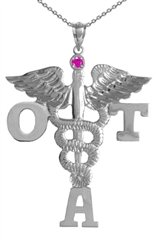 -. Title : NursingPin - Occupational Therapist Assistant OTA Pin with Ruby in Silver