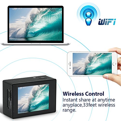 2.4G Wireless Wrist Remote Control- When you are cycling, gliding, zip-lining or skateboarding, shooting your photos or videos is easy. Press buttons on the remote. No more trouble - Mount the camera with the included accessories to any position, and catch your movement with the remote.