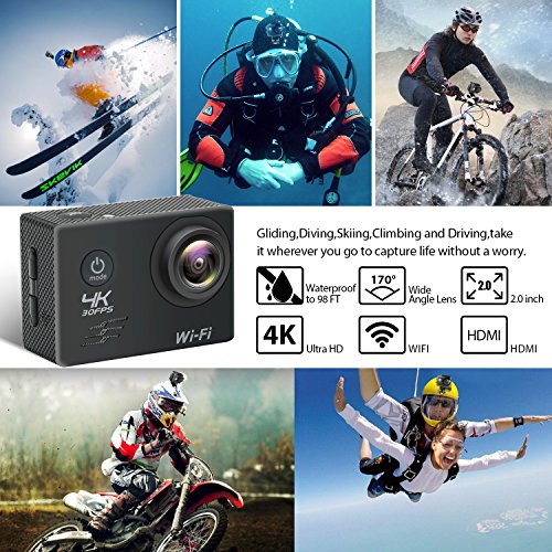 WHLZD Sports Action Camera, 4K WiFi Ultra HD Waterproof Camera ,2.0 Inch LCD HDMI 16MP + 170 Degree Wide Viewing Angle - 2.4G Remote Control With Accessories Kits