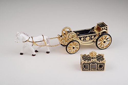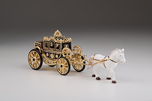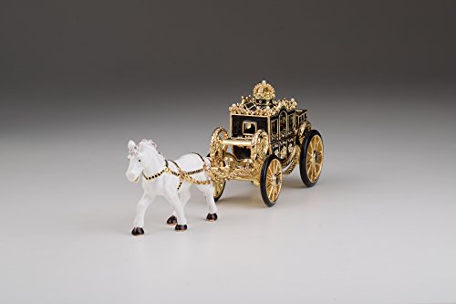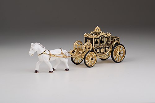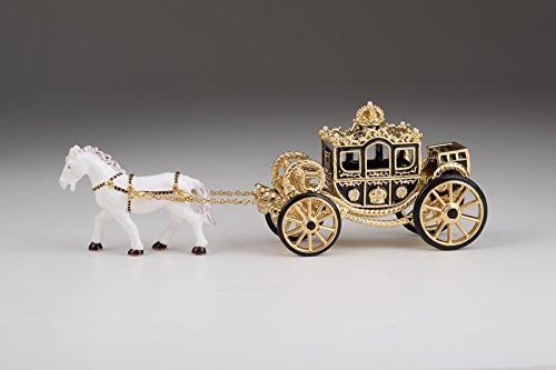 White Horse Pulling a Golden Carriage Unique Faberge Style Trinket Box