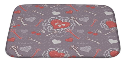 Gear New Valentine Romantic Love Pattern with Key to Heart Bath Rug Mat No Slip Microfiber Memory Foam
