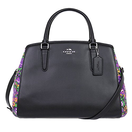 -. Title : F57630 Women's Leather Bag Black × Violet Multi