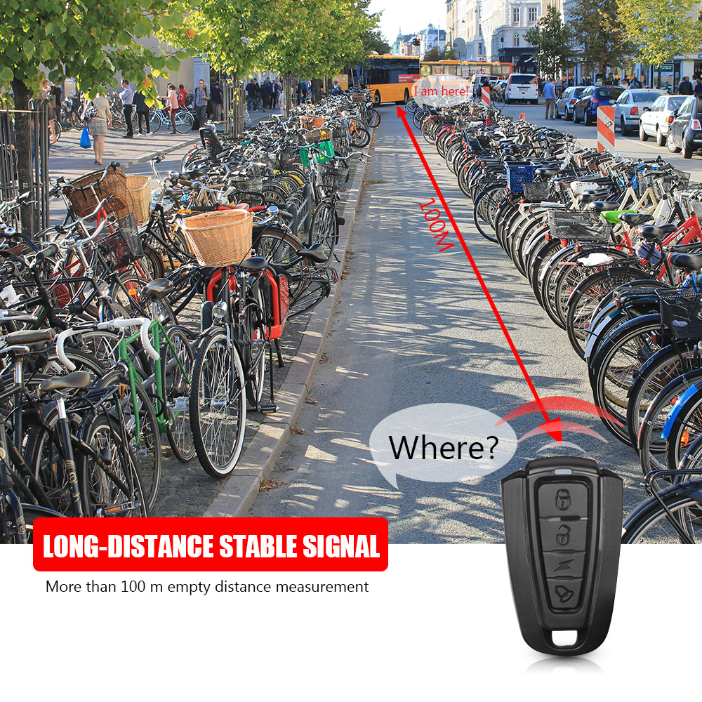 • Ultra-high decibel siren, the highest decibel up to 120 decibels, once the bicycle has a touch vibration, it will emit piercing alarm sound sharp enough to frighten and deter thieves. Taillights COB high light beads,Brightness can be achieved automotive light, support for remote control or manually switch between the three lighting modes (flash / normal / slow flash).