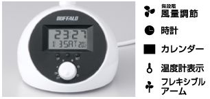 ???風量調整、時計/カレンダー/温度計表示、バックライトなど